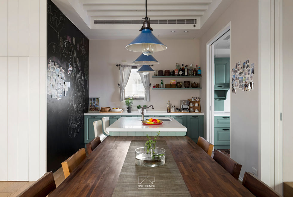 主要建材 木皮染色 / 復古面地磚 / 黑板漆 / 文化石 / 百葉窗 / 海島型地板